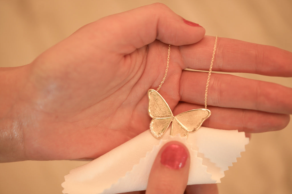 Give it a nice polish with the polishing cloth provided. When you are not wearing your sterling silver jewelry, it is best to keep it an airtight bag with the anti-tarnish square provided when you received your jewelry. Store your necklace by itself so the metal doesn’t interact with your other jewelry. Avoid any contact with harsh chemicals such as perfume.